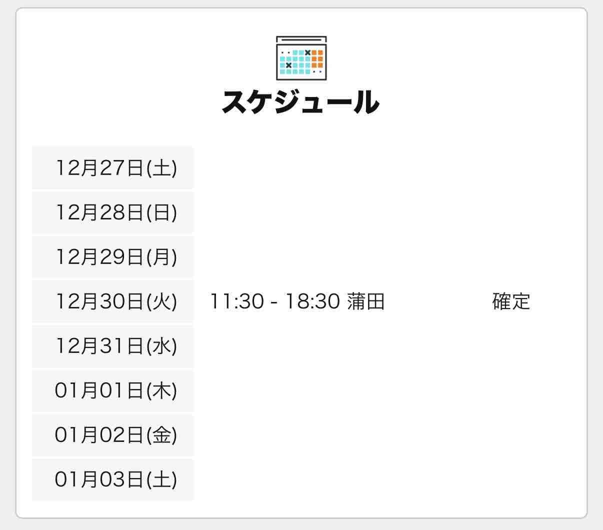 年内は残りこんな感じのスケジュールで出勤しようと思っています!